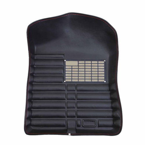 کفپوش فوق برای انواع خودروها مناسب است.یکی از نقاط قوت این کفپوش جنس مواد بهکار رفته در ساخت آن است. این کفپوش از چرم ساخته شده و از کیفیت بالایی برخوردار است. طراحی این کفپوش به شکلی بوده که به آن ظاهری سهبعدی بخشیده است. کفپوش فوق دارای سه تکهی مجزا بوده که دو تکه برای قسمت جلوی خودرو بوده و قسمت یکتکهی بزرگ برای قرارگرفتن در بخش عقبی خودرو طراحی شده است. چرم به کار رفته در این کفپوش با روکشهای چرم خودرو همخوانی بالایی خواهد داشت و موجب زیبایی هرچه بیشتر فضای داخل کابین خواهد شد. این کفپوش به خوبی کف خودرو را پوشش میدهد و مانع از خوردگی و ساییدگی آن میشود. این محصول به دلیل طراحی مناسبی که دارد، بهراحتی نمیلغزد و بهخوبی در جای خود قرار میگیرد.