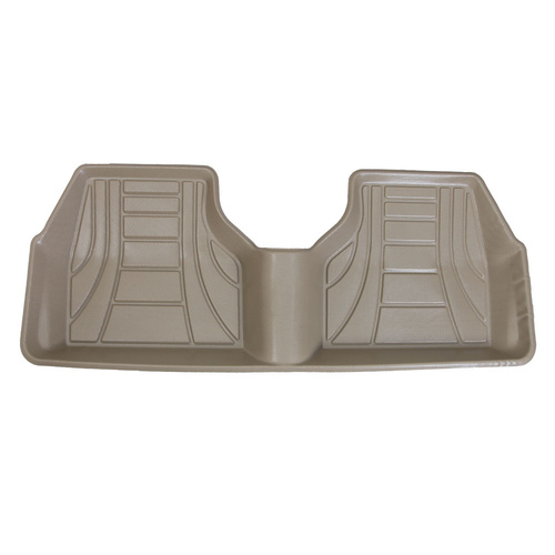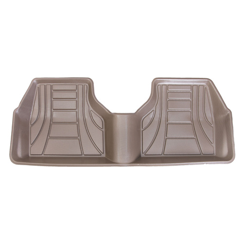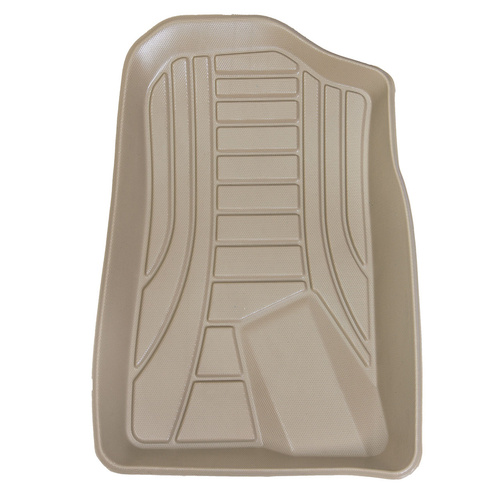 طراحی این کفپوش به شکلی بوده که به آن ظاهری سهبعدی بخشیده است. کفپوش فوق دارای سه تکهی مجزا بوده که دو تکه برای قسمت جلوی خودرو بوده و قسمت یک تکهی بزرگ برای قرارگرفتن در بخش عقبی خودرو طراحی شده است. چرم به کار رفته در این کفپوش با روکشهای چرم خودرو همخوانی بالایی خواهد داشت و موجب زیبایی هرچه بیشتر فضای داخل کابین خواهد شد. این کفپوش به خوبی کف خودرو را پوشش میدهد و مانع از خوردگی و ساییدگی آن میشود. این محصول به دلیل طراحی مناسبی که دارد، بهراحتی نمیلغزد و بهخوبی در جای خود قرار میگیرد.